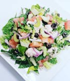 Light cheese, romaine lettuce, garlic, onion, tomatoes, olives, & house dressing.