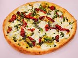 Spinach, mushrooms, onions, tomatoes, red roasted peppers, tomato sauce & mozzarella.